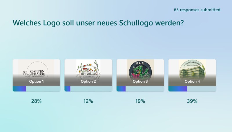 Mit grossem Engagement und Kreativität beteiligten sich 26 Schülerinnen und Schüler mit der Einreichung ihrer selbst kreierten Logos an der Wahl eines Schullogos. Mit einer hohen Wahlbeteiligung schafften es vier Logos in die nächste Runde.